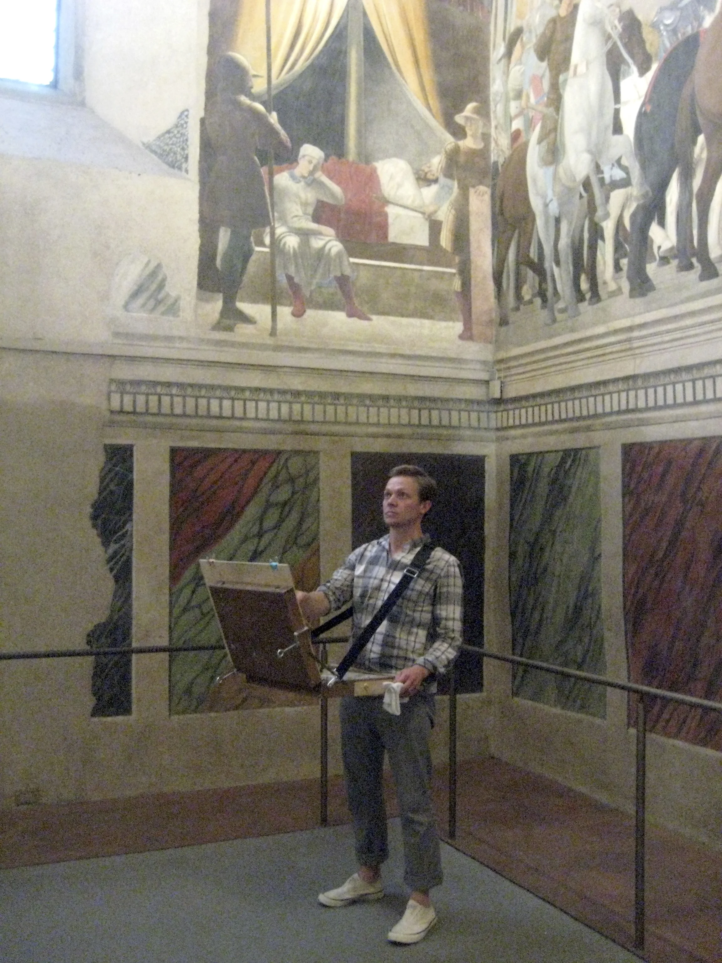 In the Summer of 2014 I set out on a project in Italy, the goal of which was to uncover or come to grasp something of the enigma of the works of Piero della Francesca. For 30 days I used drawing and painted sketches as a way to think through Piero’s frescoes in person. Or to speak less abstractly, I was trying to become acquainted, conversational, or maybe even intimate with these luminous works.