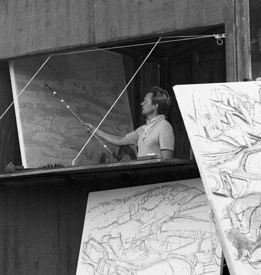 Benny Fountain is a painter and art educator from Moscow, Idaho. After spending several years away (Portland, Philadelphia, Rome, Texas), Fountain recently returned to the Northwest to lead the Drawing and Painting track at Whitworth University in Spokane, Washington. Fountain’s work has been exhibited in numerous national and international exhibits. In 2018 he was Artist in Residence at the Josef and Anni Albers Foundation and in Spring of 2022 he was Resident Fellow at the American College of the Mediterranean in Aix-en-Provence, France. Since returning to the Northwest in 2023, Fountain has created a body of work from his hilltop studio-shack in the farmlands of the Palouse. These large-scale landscape paintings were recently exhibited in Fountain’s sixth Solo Exhibition at the Froelick Gallery in Portland, Oregon in July – September, 2025.